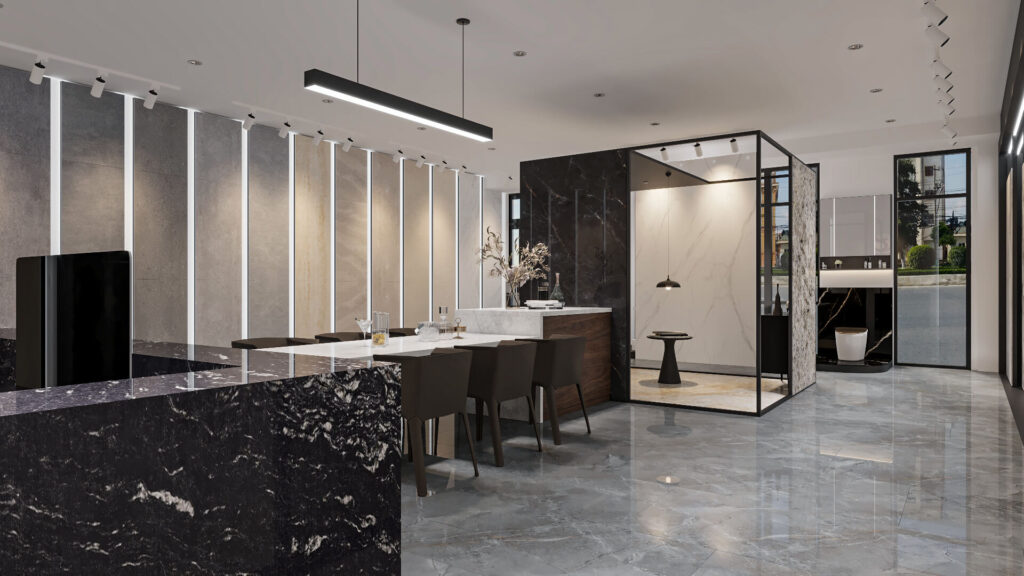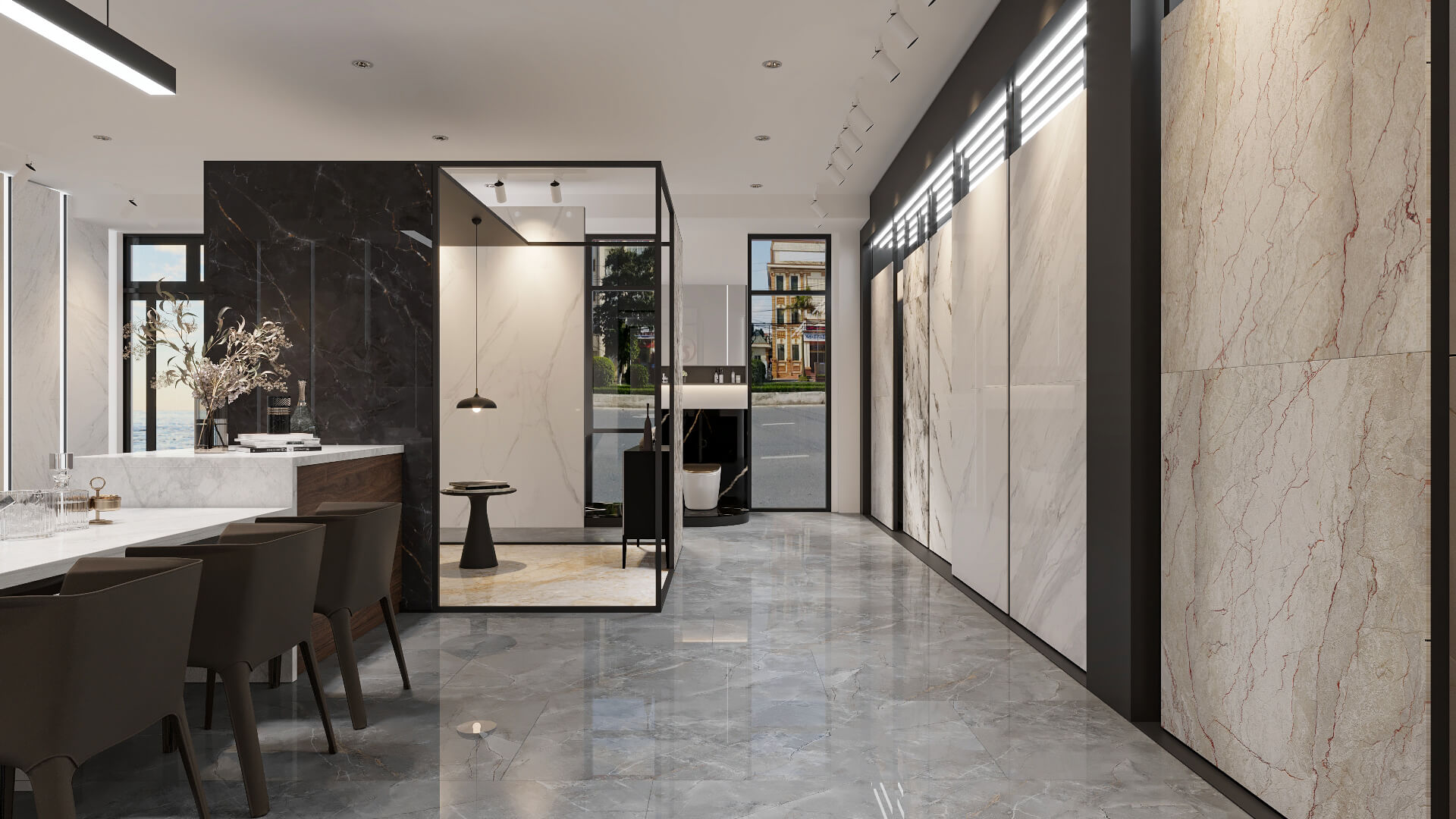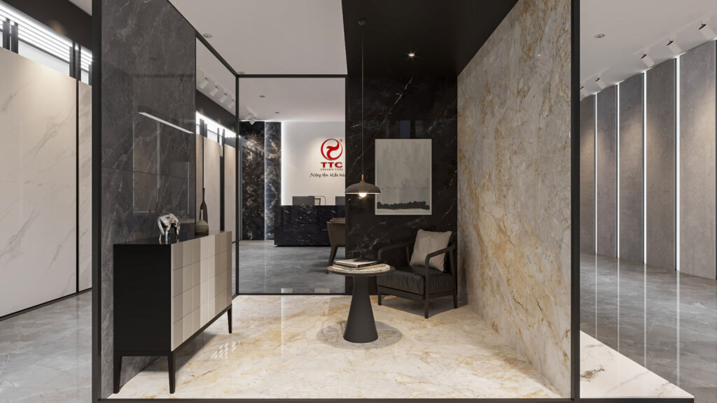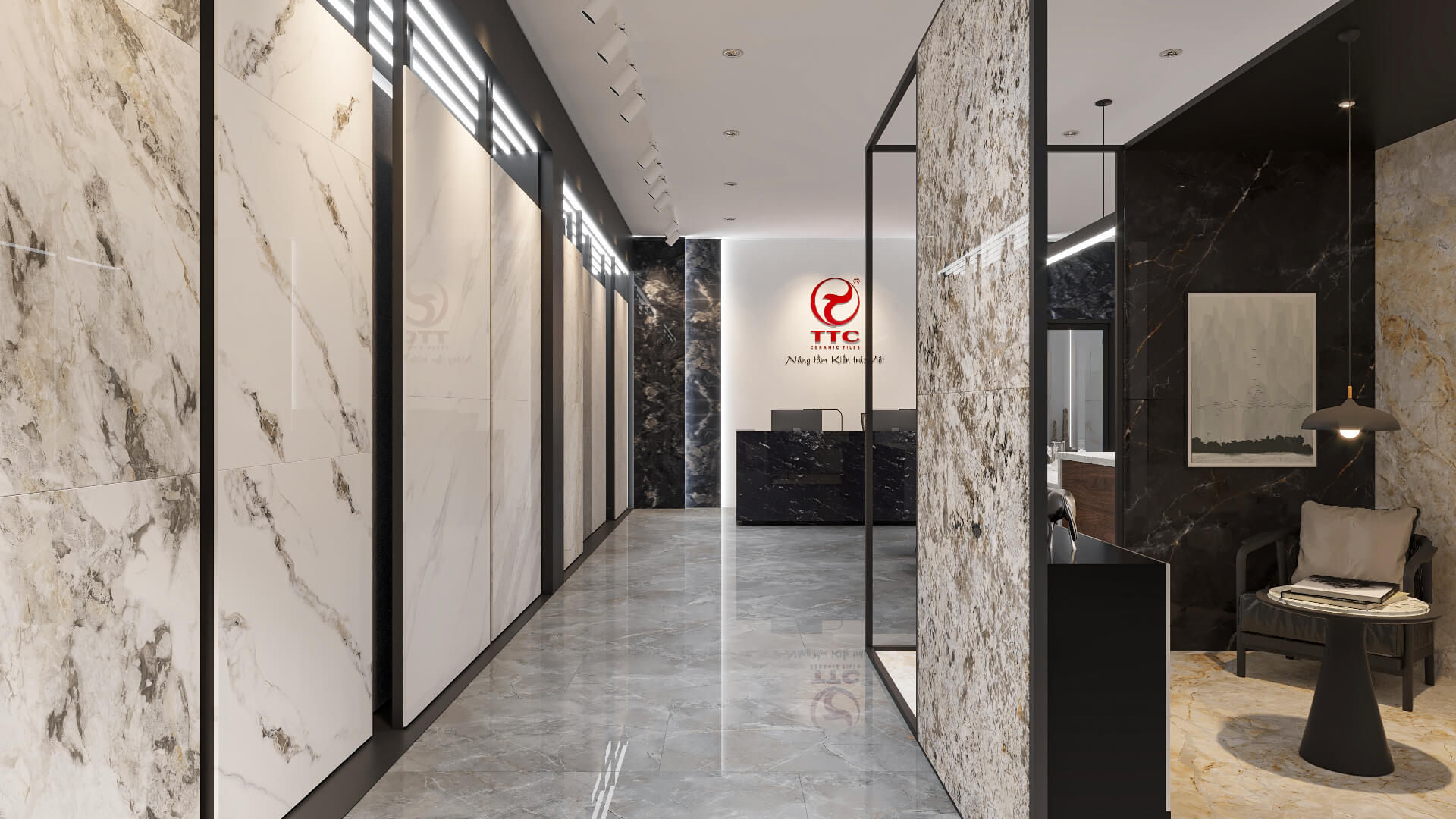 TTC đặt ra yêu cầu xây dựng một showroom mang phong cách hiện đại, cao cấp, vừa làm nổi bật đặc tính của vật liệu gạch, vừa tạo trải nghiệm tham quan trực quan, dễ tiếp cận cho khách hàng và đối tác.